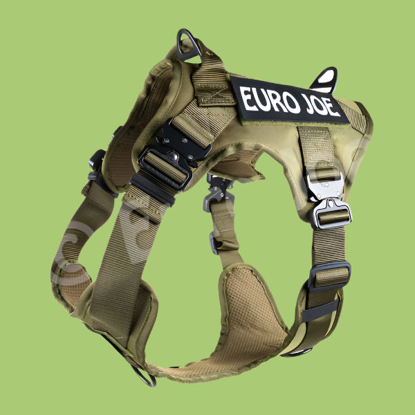 רתמת הכלבים הטקטית של Euro Joe היא רתמה עשויה ניילון חזק, עמיד ונוח, עם מגוון פונקציות ועיצוב יציב ומקצועי.